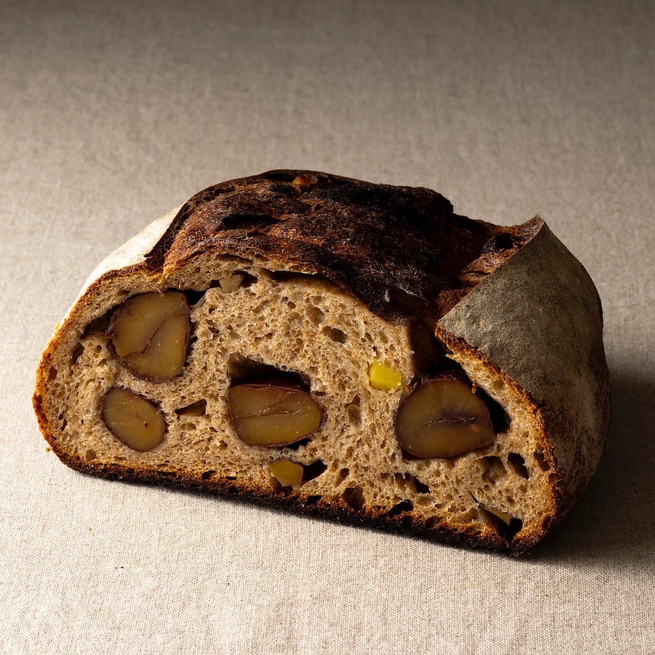 ブロンの生地に小さく刻んだ栗の甘露煮を練り込み、渋皮煮をゴロッと入れた贅沢なパン。